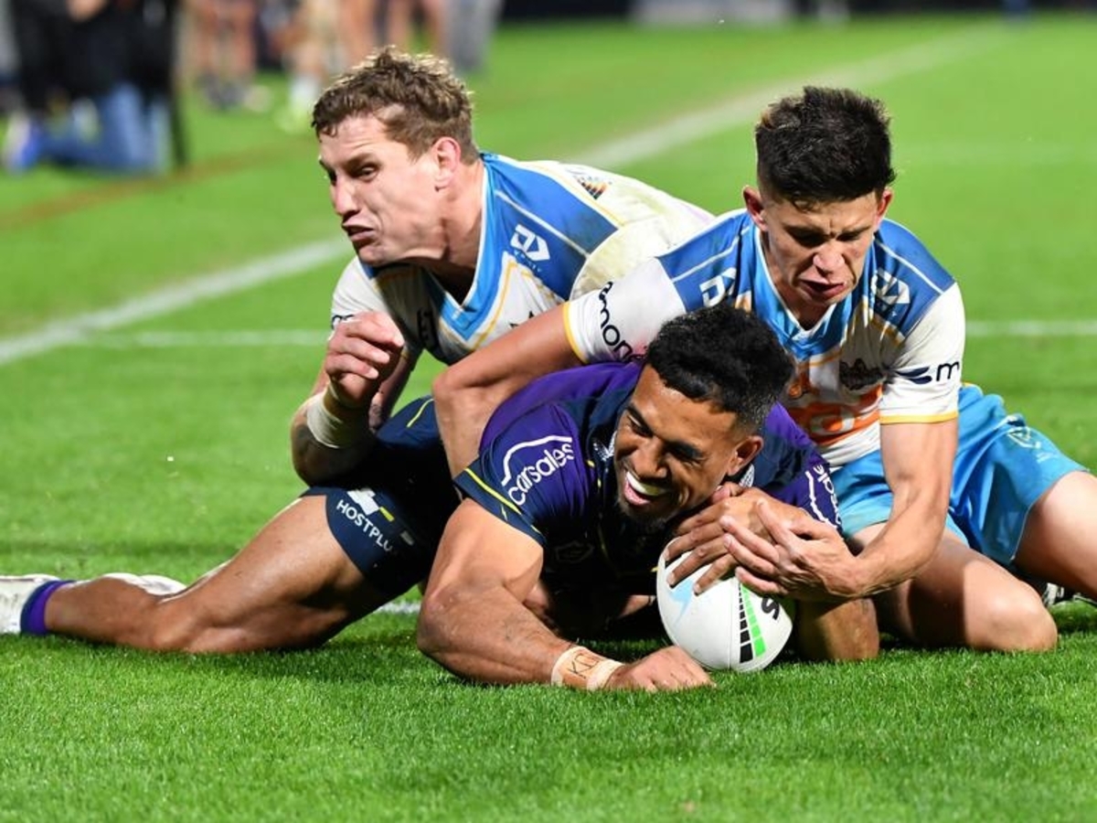 After trailing 16-4 at halftime, Gold Coast hit back when they made Melbourne pay for a Dale Finucane knock-on and Kelly scored off an Ash Taylor grubber in the 42nd minute.