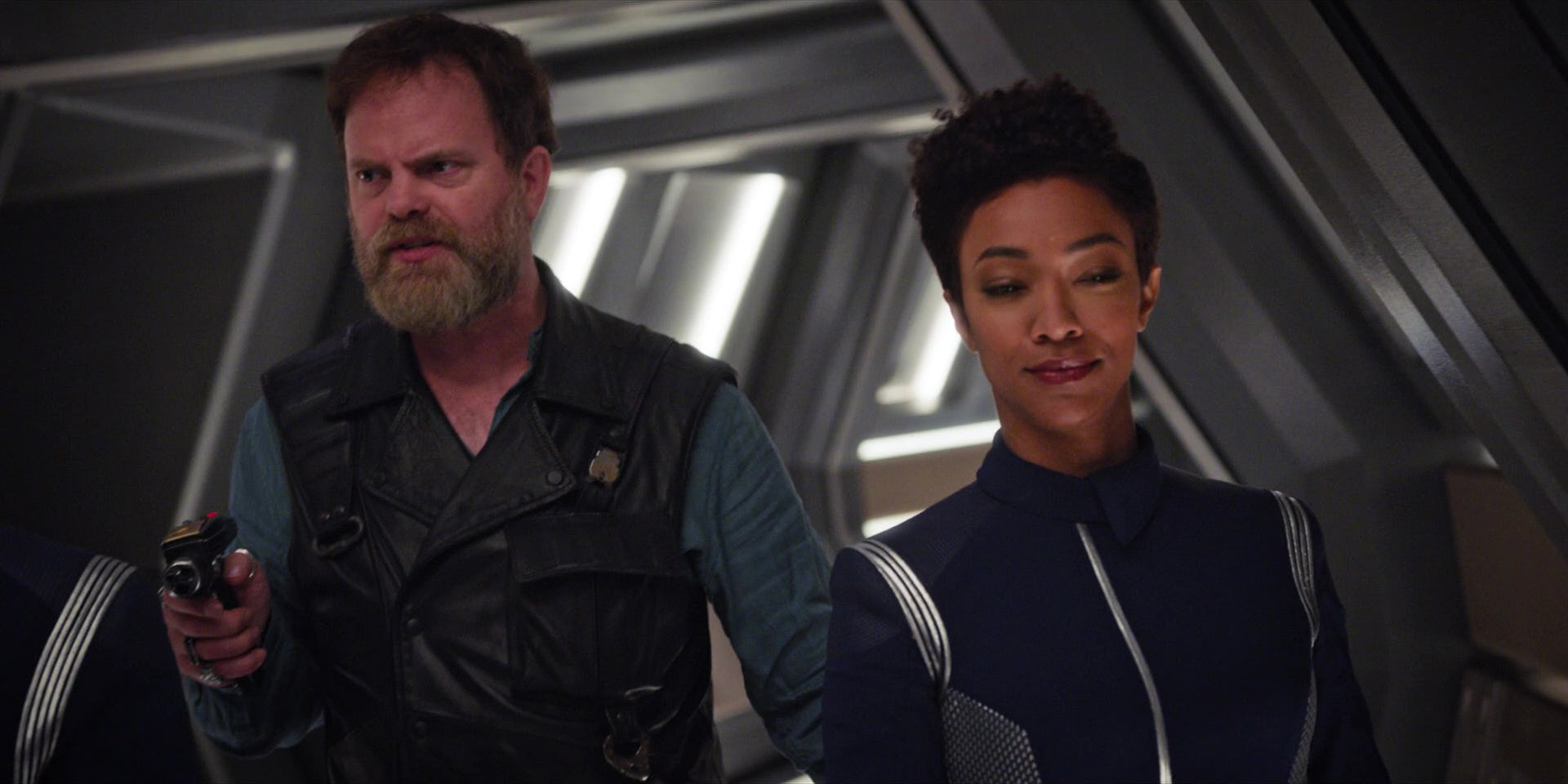 “I think we’ve been seeing the real Harry Mudd throughout. We certainly see him at the end of this episode. [“The Escape Artist.”] But I think it would be fun to have future episodes where you don’t know if you’re seeing Mudd or a duplicate Mudd running around the universe. That would be really interesting.”