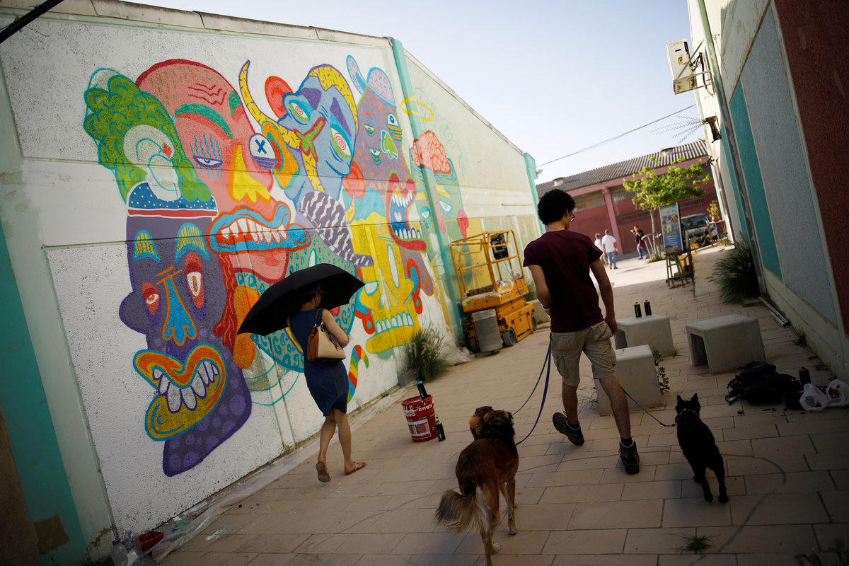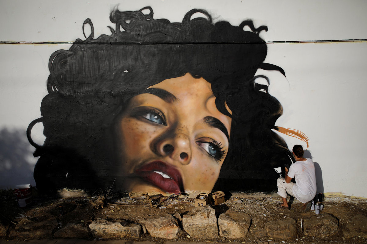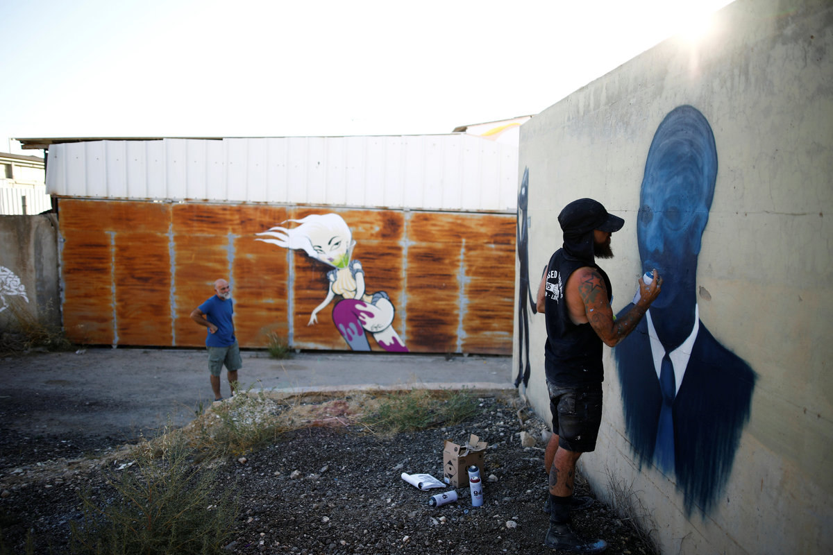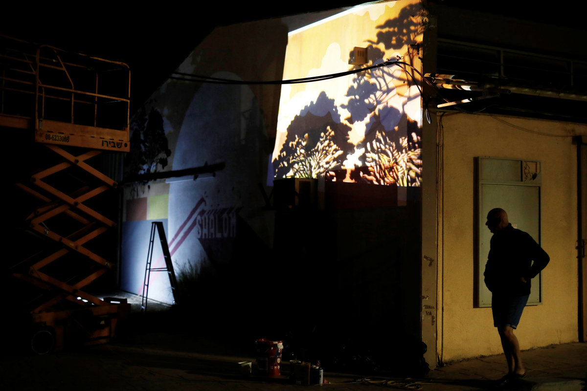 People walk past a wall painting by Israeli artist who goes by the name Dioz, during an art happening, called POW! WOW! Israel, which is connected to a week-long art and culture festival held in Hawaii called POW! WOW! Hawaii, in the southern city of Arad, Israel June 5, 2017. Picture taken June 5, 2017. REUTERS/Amir CohenAmerican artist, who goes by the name Drew (L), looks at a mobile phone with a woman during an art happening, called POW! WOW! Israel, which is connected to a week-long art and culture festival held in Hawaii called POW! WOW! Hawaii, in the southern city of Arad Israel June 6, 2017. Picture taken June 6, 2017. REUTERS/Amir CohenA cleaner works in front of a wall painting by Israeli artist who goes by the name Dioz, during an art happening, called POW! WOW! Israel, which is connected to a week-long art and culture festival held in Hawaii called POW! WOW! Hawaii, Israel June 6, 2017. Picture taken June 6, 2017. REUTERS/Amir CohenAmerican artist, who goes by the name Cryptik, works on his wall painting during an art happening, called POW! WOW! Israel, which is connected to a week-long art and culture festival held in Hawaii called POW! WOW! Hawaii, in the southern city of Arad, Israel June 5, 2017. Picture taken June 5, 2017. REUTERS/Amir CohenA girl walks stands in front of a wall painting by Hawaiian artist Noelle Enright during an art happening, called POW! WOW! Israel, which is connected to a week-long art and culture festival held in Hawaii called POW! WOW! Hawaii, in the southern city of Arad, Israel June 6, 2017. Picture taken June 6, 2017. REUTERS/Amir CohenA woman stands in front of a wall painting by American-Israeli artist, who goes by the name, Zero Cents, during an art happening, called POW! WOW! Israel, which is connected to a week-long art and culture festival held in Hawaii called POW! WOW! Hawaii, in the southern city of Arad, Israel June 5, 2017. Picture taken June 5, 2017. REUTERS/Amir CohenAmerican artist, who goes by the name Rabi Cyrcle, works on his wall painting during an art happening, called POW! WOW! Israel, which is connected to a week-long art and culture festival held in Hawaii called POW! WOW! Hawaii, in the southern city of Arad, Israel June 6, 2017. Picture taken June 6, 2017. REUTERS/Amir CohenThe shadow of American artist, who goes by the name Drew, is seen on the wall as he works on his wall painting during an art happening, called POW! WOW! Israel, which is connected to a week-long art and culture festival held in Hawaii called POW! WOW! Hawaii, in the southern city of Arad, Israel, June 5, 2017. REUTERS/Amir CohenAmerican-Israeli artist, who goes by the name, Zero Cents, works on a wall painting during an art happening, called POW! WOW! Israel, which is connected to a week-long art and culture festival held in Hawaii called POW! WOW! Hawaii, in the southern city of Arad, Israel June 6, 2017. REUTERS/Amir CohenA man stands next to a wall painting by Hawaiian artist Noelle Enright during an art happening, called POW! WOW! Israel, which is connected to a week-long art and culture festival held in Hawaii called POW! WOW! Hawaii, in the southern city of Arad, Israel June 5, 2017. Picture taken June 5, 2017. REUTERS/Amir CohenAmerican artist, who goes by the name Drew works on his wall painting during an art happening, called POW! WOW! Israel, which is connected to a week-long art and culture festival held in Hawaii called POW! WOW! Hawaii, in the southern city of Arad, Israel June 5, 2017. Picture taken June 5, 2017. REUTERS/Amir CohenAmerican artist, who goes by the name Drew works on his wall painting during an art happening, called POW! WOW! Israel, which is connected to a week-long art and culture festival held in Hawaii called POW! WOW! Hawaii, in the southern city of Arad, Israel June 5, 2017. Picture taken June 5, 2017. REUTERS/Amir CohenA dog stands in front of a wall painting by American-Israeli artist, who goes by the name, Zero Cents, during an art happening, called POW! WOW! Israel, which is connected to a week-long art and culture festival held in Hawaii called POW! WOW! Hawaii, Israel June 6, 2017. Picture taken June 6, 2017. REUTERS/Amir CohenChildren walk near an wall paintings by American-Israeli artist, who goes by the name Zero Cents (R), and Hawaiian artist Noelle Enright (L), during an art happening, called POW! WOW! Israel, which is connected to a week-long art and culture festival held in Hawaii called POW! WOW! Hawaii, in the southern city of Arad, Israel June 6, 2017. Picture taken June 6, 2017. REUTERS/Amir CohenAmerican artist, who goes by the name Rabi Cyrcle (L) and American artist, who goes by the name Drew, work during an art happening, called POW! WOW! Israel, which is connected to a week-long art and culture festival held in Hawaii called POW! WOW! Hawaii, in the southern city of Arad, Israel June 6, 2017. Picture taken June 6, 2017. REUTERS/Amir Cohen