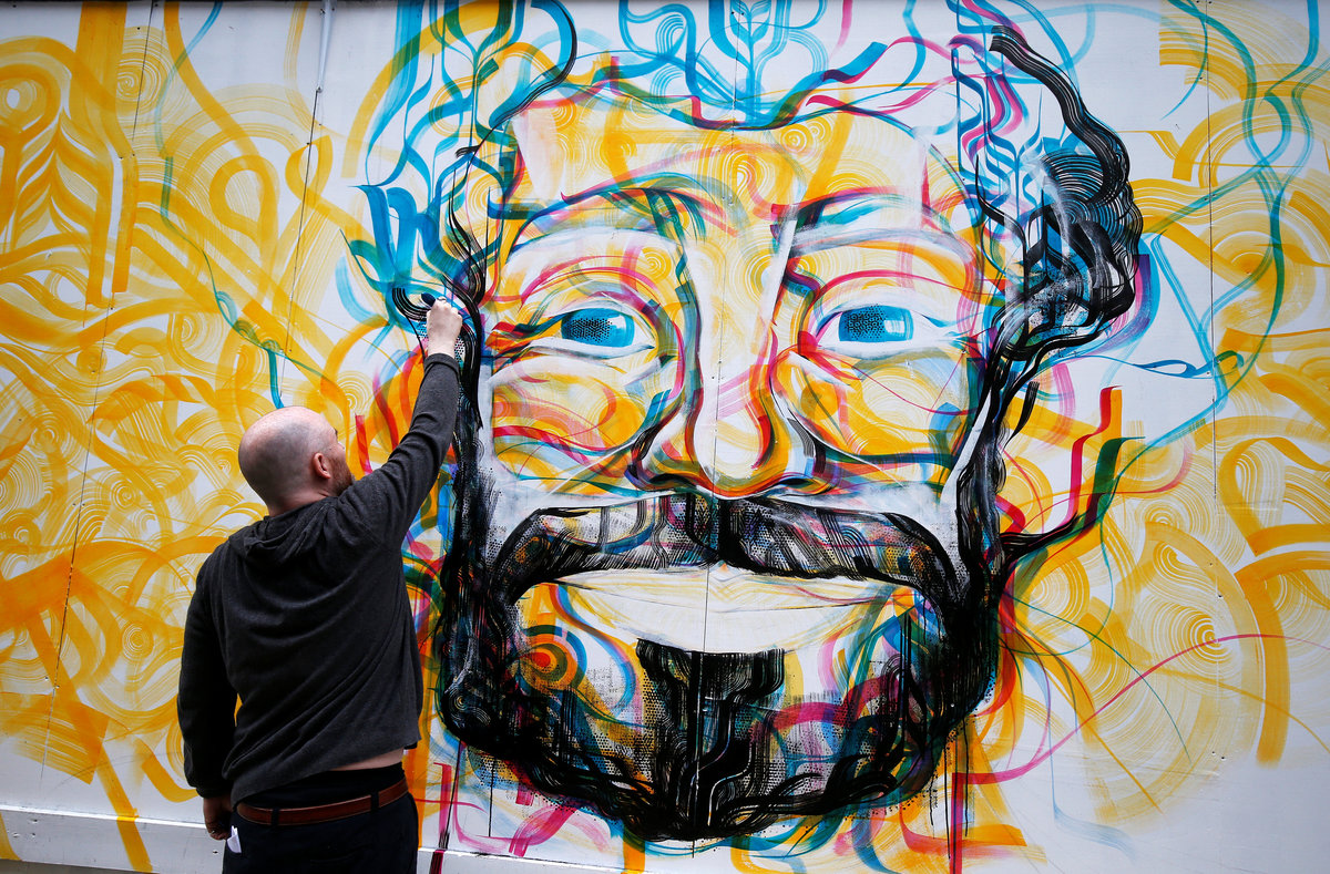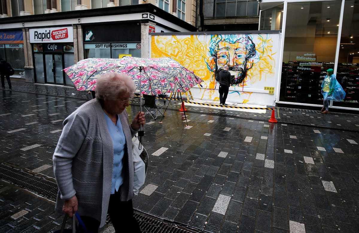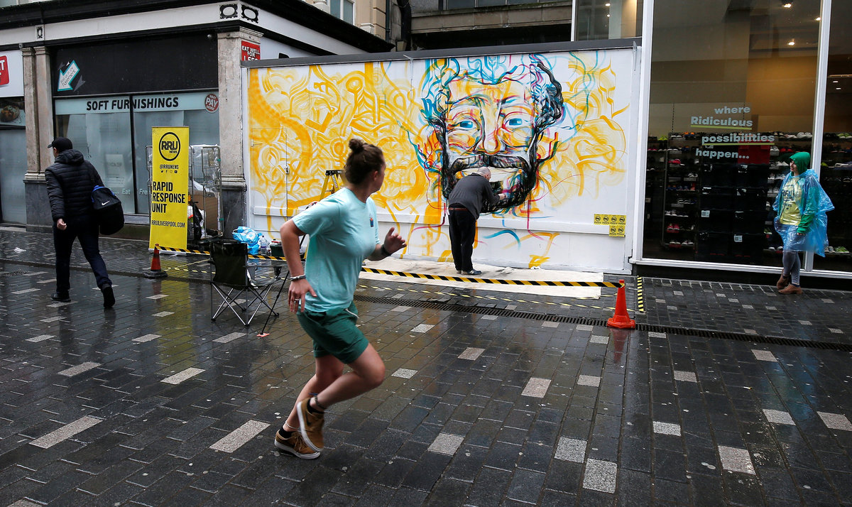 Guy McKinley paints mural of Liverpool's start striker Mo Salah from Egypt on hoarding in Liverpool's city centre ahead of his team's Champions League final in Kiev against Real Madrid tomorrow, in Liverpool, Britain, May 25, 2018. REUTERS/Andrew YatesGuy McKinley paints mural of Liverpool's start striker Mo Salah from Egypt on hoarding in Liverpool's city centre ahead of his team's Champions League final in Kiev against Real Madrid tomorrow, in Liverpool, Britain, May 25, 2018. REUTERS/Andrew Yates