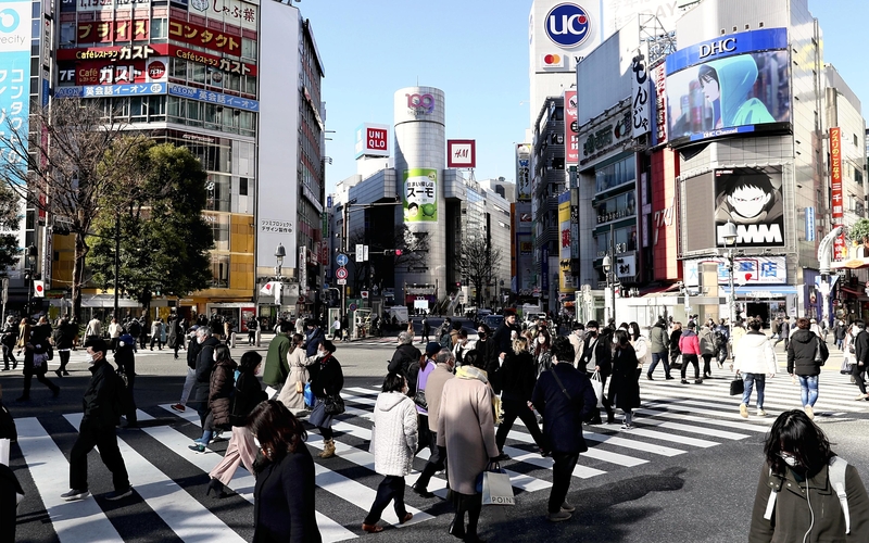 The Shibuya district of Tokyo is visited by many young people from other areas of the capital and other prefectures in the metropolitan area. Shortly after noon, a large number of people were seen walking across the intersection in front of Shibuya Station, being careful to avoid each other.