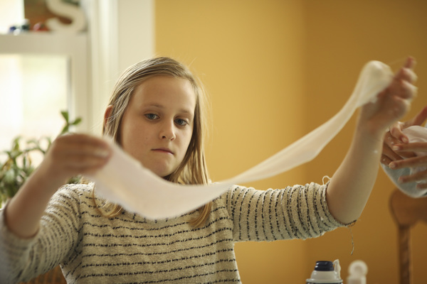 Annabell Sorensen is a 12-year-old slime connoisseur at South View Middle School in Edina, Minn. She describes the "ideal" slime as "stretchy, fun to play with and a little sticky." Depending on the ingredients and amounts, slime can end up too sticky, too stringy or too dry, she explained. Like many girls, Annabell has a favorite recipe, which she personalizes with food coloring, glitter, even little Styrofoam balls.