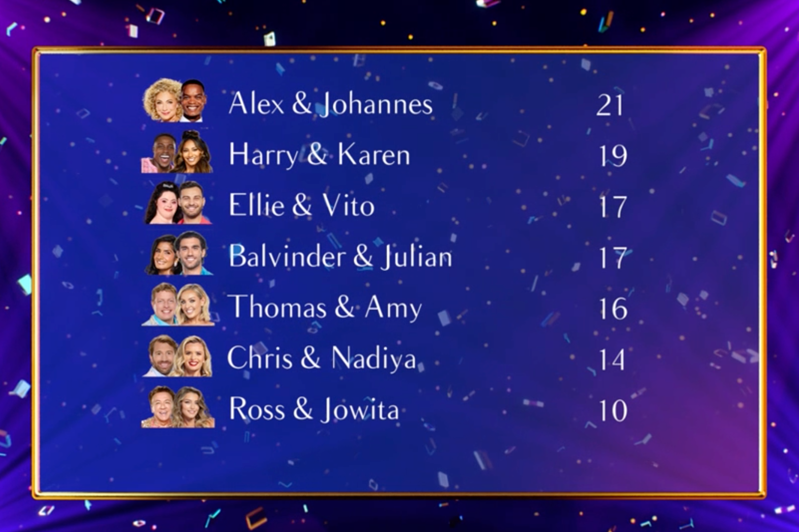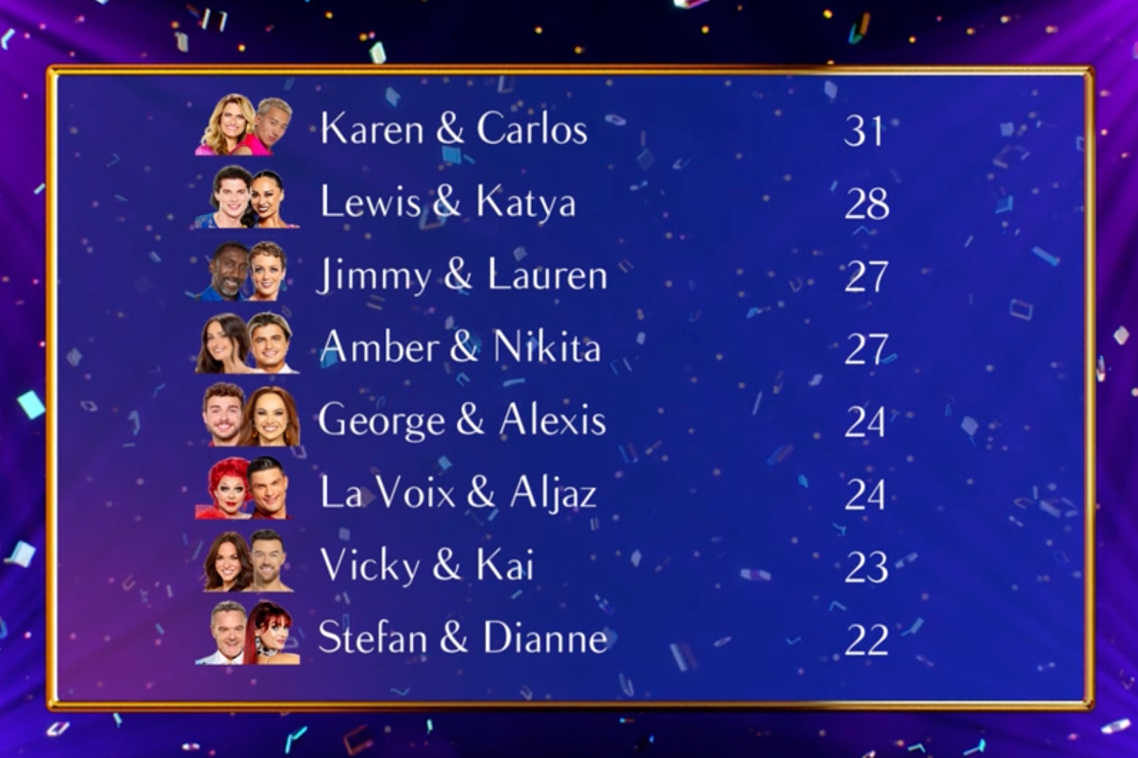 Coming up behind them were actor Lewis Cope and dancer Katya Jones with 28 points. Former footballer Jimmy Floyd Hasselbaink and his partner Lauren Oakley and actor and former Love Island contestant Amber Davies and dancer Nikita Kuzmin both tied third, with 27 points.