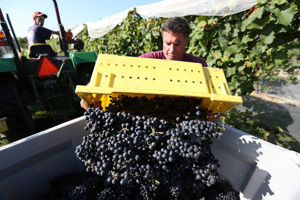 "September has really turned things around," Coia said while, on an unseasonably hot morning, five pickers snipped off dense bunches of dark purple grapes and let them fall into yellow trays called lugs at their feet.