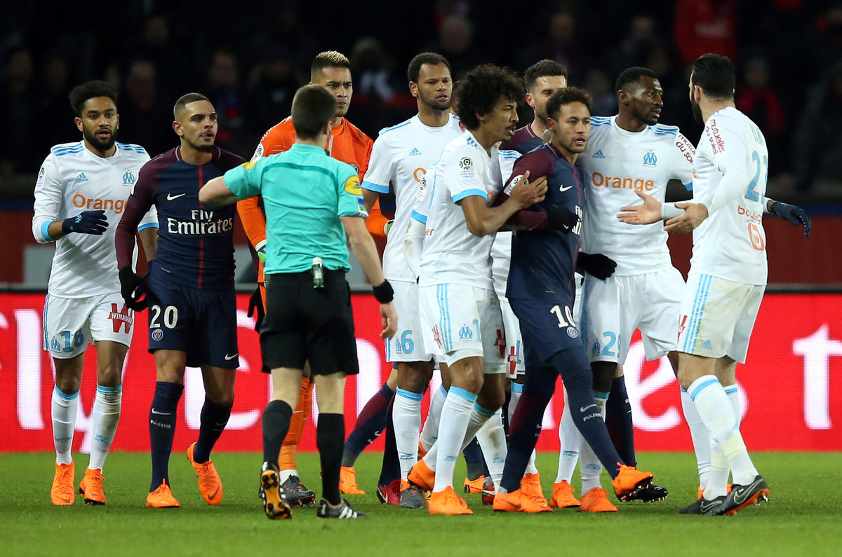 PARIS (Reuters) - Paris St Germain continued their stroll towards the French title with a 3-0 home win against bitter rivals Olympique de Marseille on Sunday but forward Neymar left the field on a stretcher late in the game as they extended their Ligue 1 lead to 14 points.