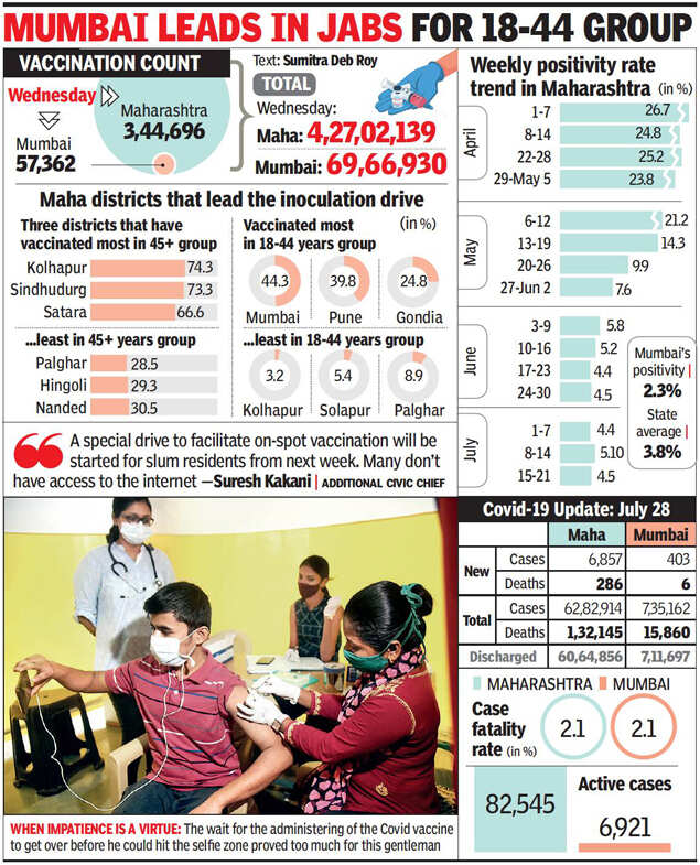 MUMBAI: After plateauing between 4% and 5% for over a month, the state’s weekly positivity rate for Covid-19 has finally climbed down. It fell to 3.8% in the week ending July 27. However, experts caution that a dip in testing in some of the high-burden districts due to the floods could have contributed to the drop.