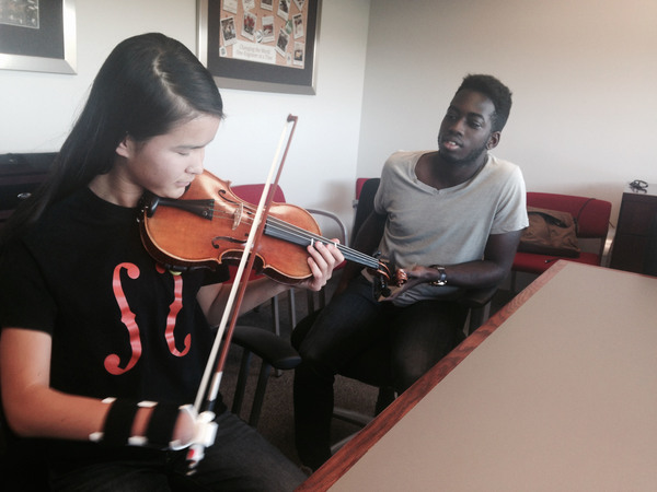 And it all comes down to a light-weight nylon/plastic prosthetic that Taiwo, an engineering student from Naperville at Northern Illinois University, designed for Sarah so this delightful 12-year-old born without a right hand can more easily play her violin.