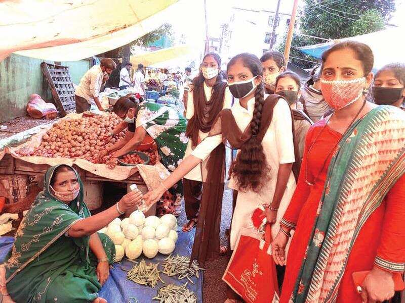 VALPOI: Volunteers of National Service Scheme (NSS) unit of Government Higher Secondary School, Valpoi, on Tuesday distributed cotton masks and sanitisers to the vendors and people found roaming without masks at Valpoi’s weekly market.