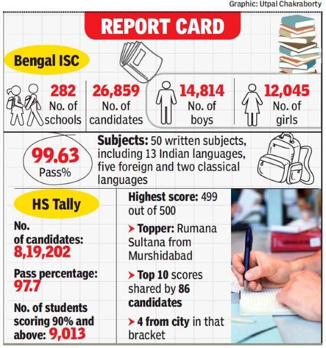 After HS results were published, of the 8lakh-odd candidates, only 9,013 students were found to have scored 90% and above this year. Last year, after some boards papers had to be cancelled due to the pandemic, the West Bengal Council for Higher Secondary Education devised a marking method that led to almost 31,000 students scoring 90% and above.