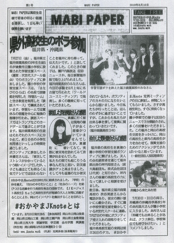 #OkayamaJKnote will publish a newspaper every other week until the end of the year. The group is considering a plan to get high school students from Mabicho to write articles for the newspaper in October.