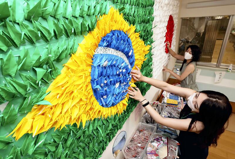 The school had also planned to hold an exchange between its students and the athletes, but this has been canceled due to the pandemic. To convey their support, students and parents crafted a Brazilian national flag out of about 600 origami cranes, and made message cards.