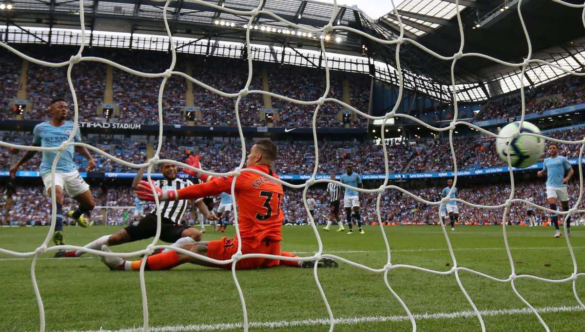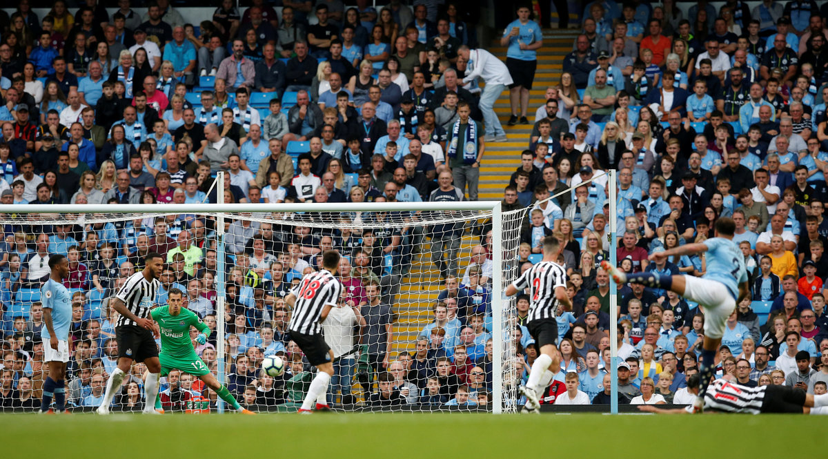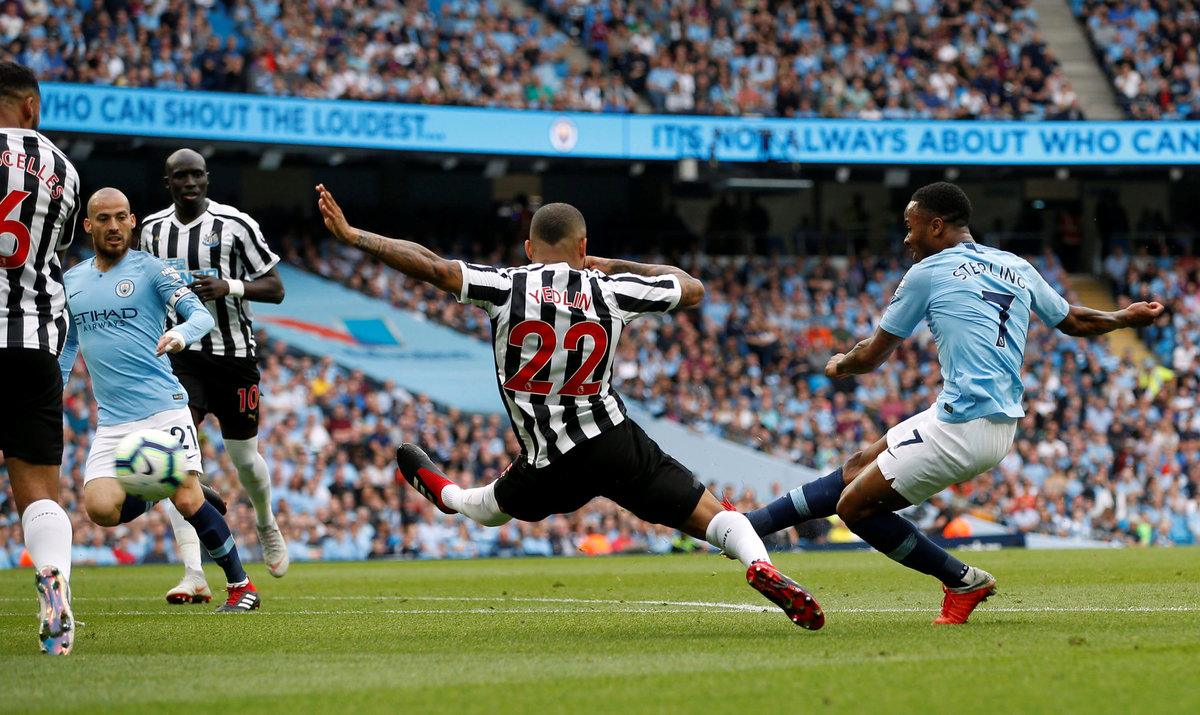 City took the lead in the eighth minute through a wonderful strike from Raheem Sterling who cut in from the left and beat Newcastle keeper Martin Dubravka with a diagonal shot into the far corner.