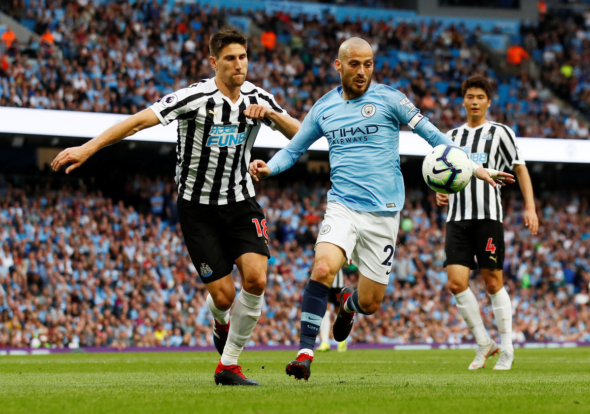 Soccer Football - Premier League - Manchester City v Newcastle United - Etihad Stadium, Manchester, Britain - September 1, 2018 Manchester City's David Silva in action with Newcastle United's Federico Fernandez Action Images via Reuters/Jason Cairnduff