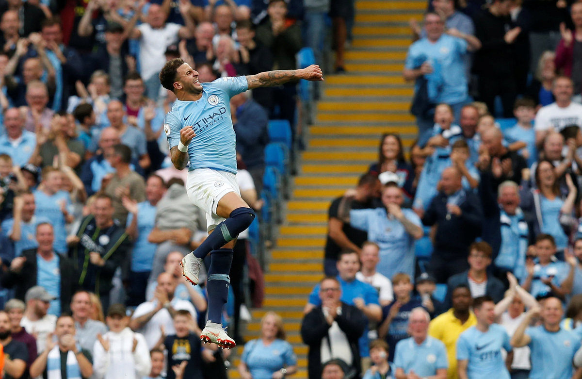 Soccer Football - Premier League - Manchester City v Newcastle United - Etihad Stadium, Manchester, Britain - September 1, 2018 Manchester City's Kyle Walker scores their second goal REUTERS/Andrew Yates