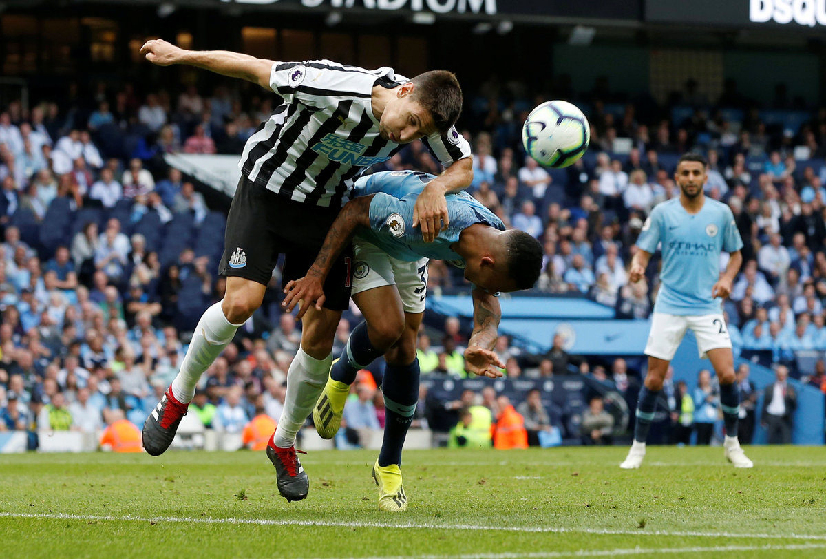 Soccer Football - Premier League - Manchester City v Newcastle United - Etihad Stadium, Manchester, Britain - September 1, 2018 Newcastle United's Federico Fernandez in action with Manchester City's Gabriel Jesus REUTERS/Andrew Yates