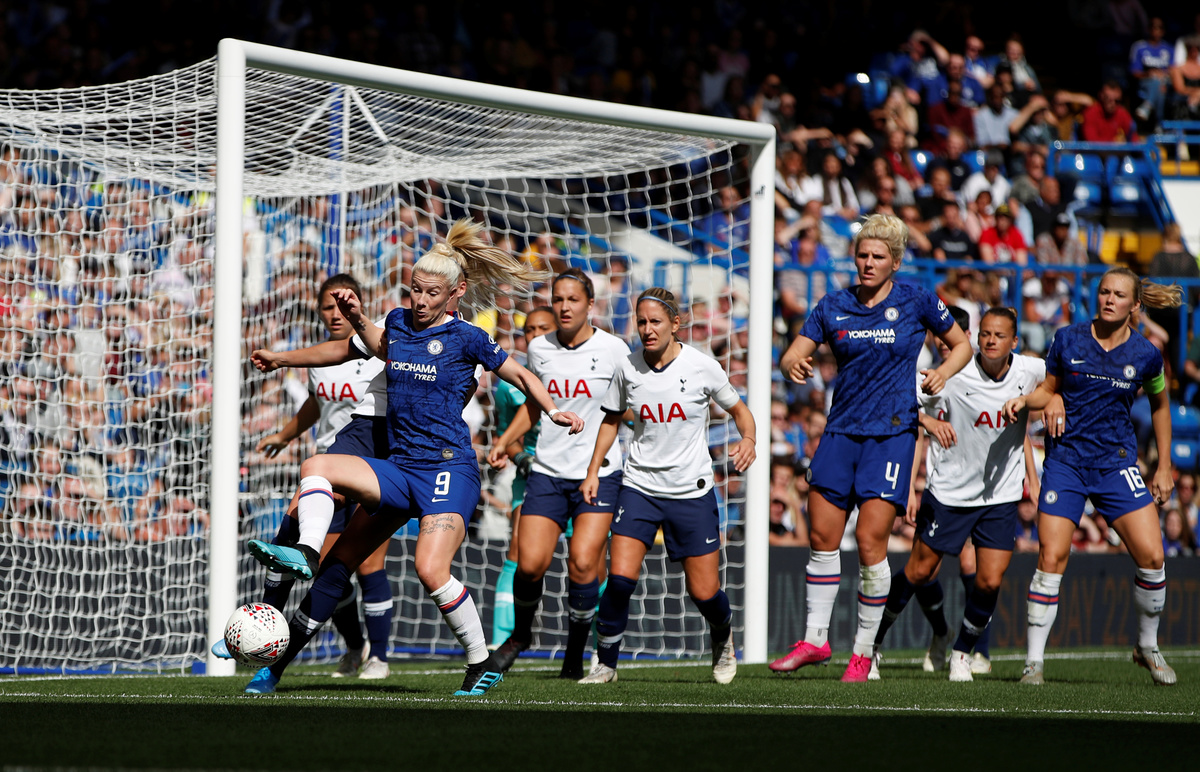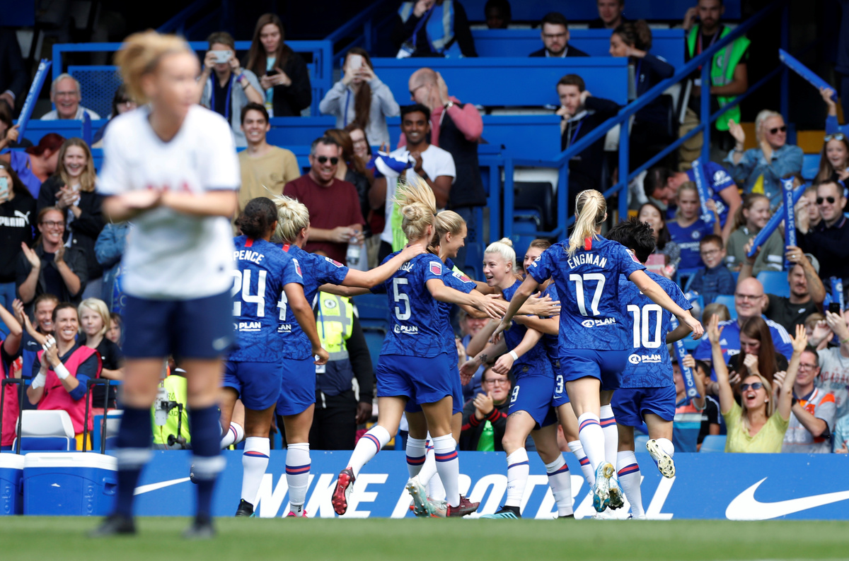 A crowd of over 24,000 at Stamford Bridge saw England get Chelsea's season off to a perfect start in the fourth minute when she rifled home a left-footed shot from outside the area.