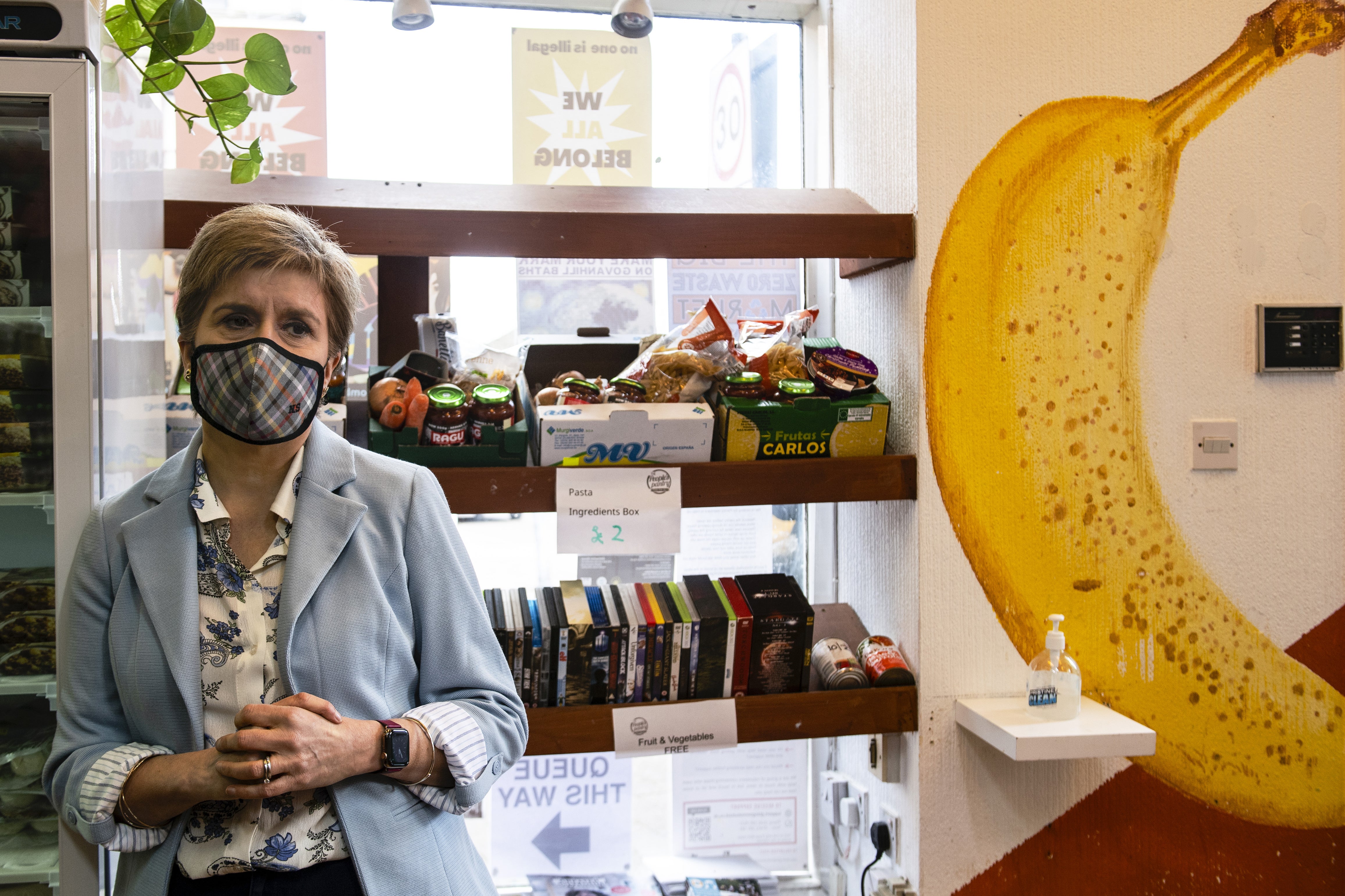 Speaking at the People’s Pantry – which supplies food to struggling families – in the Govanhill area of Glasgow, Ms Sturgeon launched her party’s campaign for the ballot on May 5.