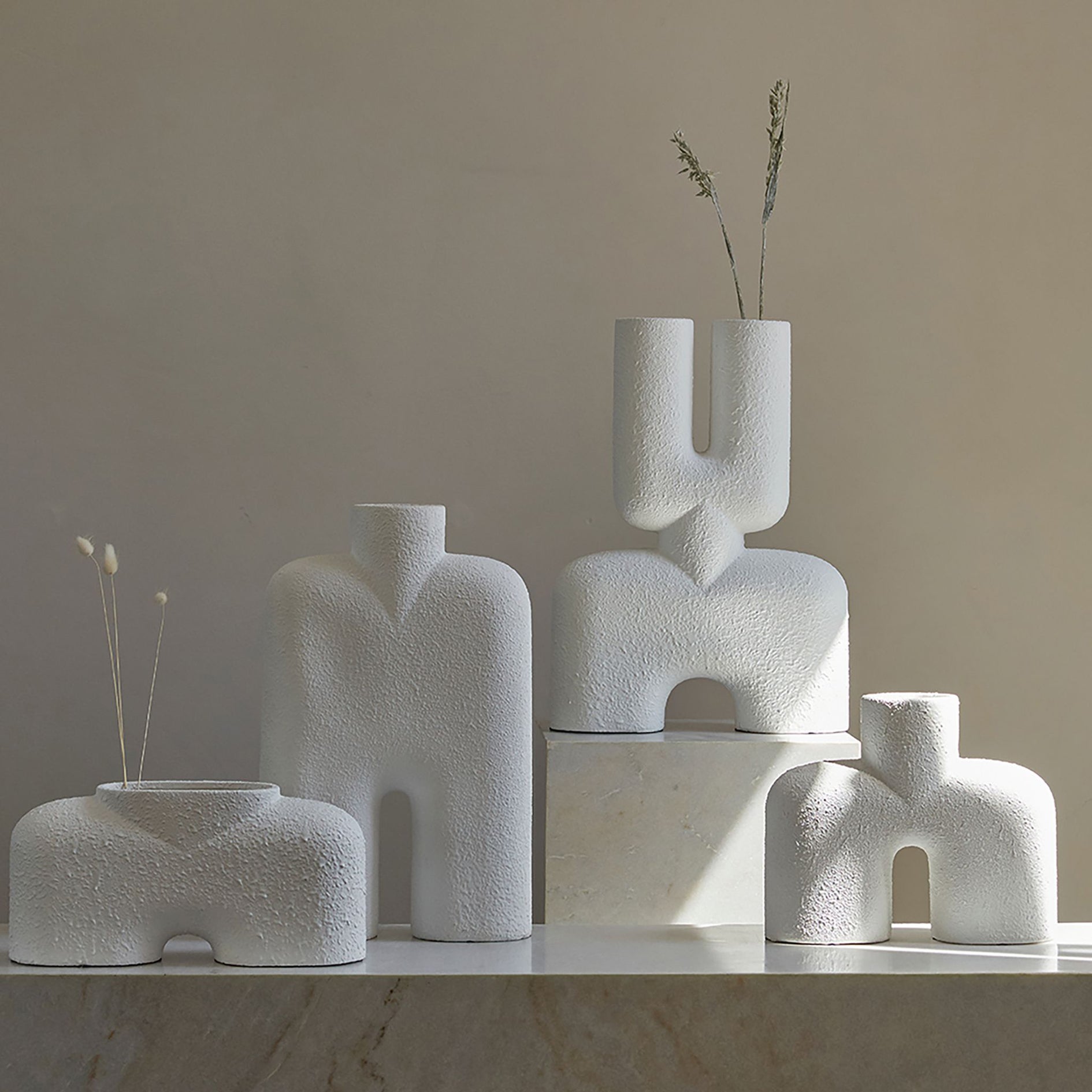 “To avoid neutrals looking too flat, mix in tactile pieces to bring rich texture and visual interest. Think hand-made, imperfect ceramics with rough surfaces and accessories with strong, interesting silhouettes that will draw attention,” suggests Thallon.