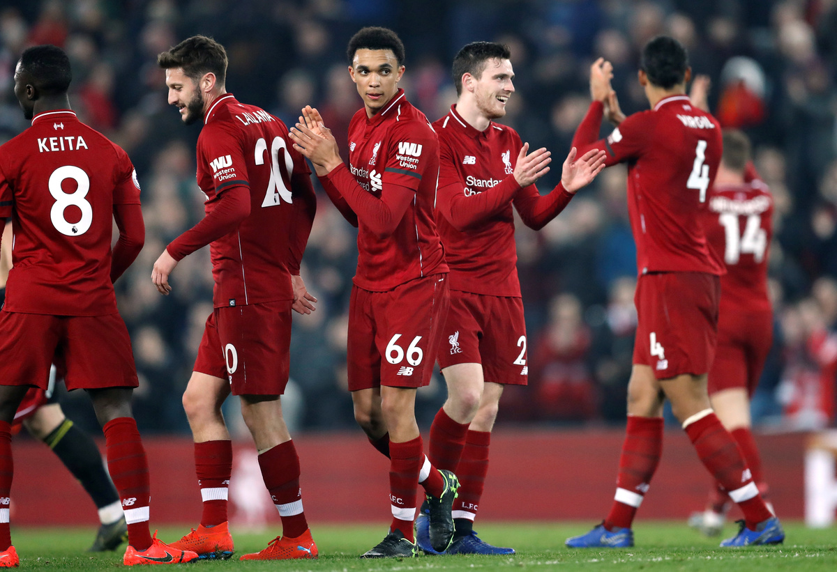 Senegalese striker Mane got the party started in the ninth minute, leaping between defenders to head in from close range after a sumptuous cross from Liverpool's marauding Trent Alexander-Arnold. The young right back provided three assists on the night.
