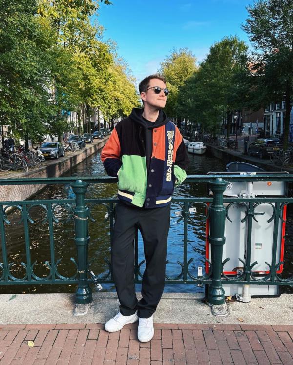 The backdrop of the city lake and surrounding greenery served as the perfect canvas for Richard's artistic ensemble. The contrast of his black outfit against the natural hues of the environment created a visually captivating scene that seemed almost surreal.