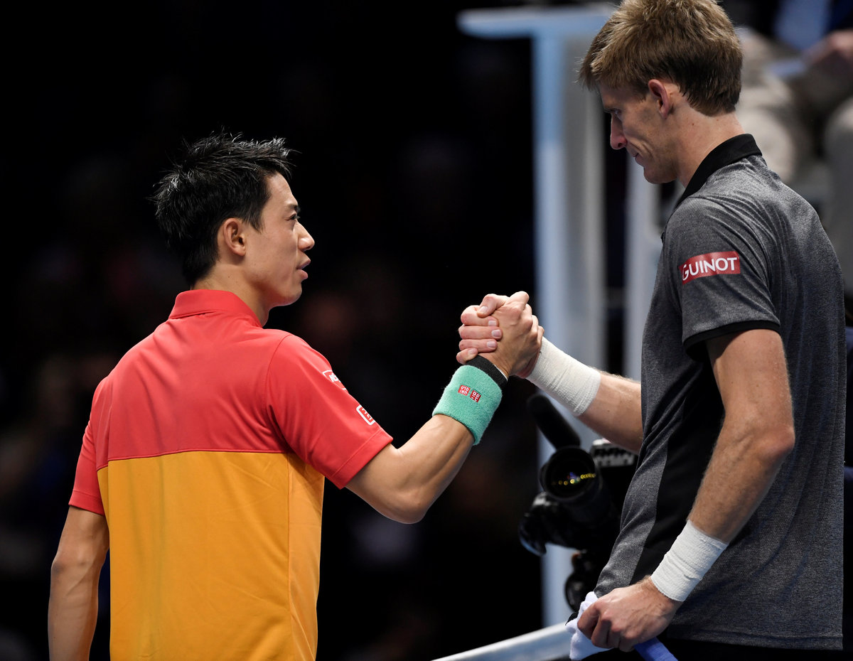 Anderson, the first player from his country to qualify for the ATP's blue riband tournament since 1995, leads the Lleyton Hewitt group with two wins after trouncing Nishikori 6-0 6-1.
