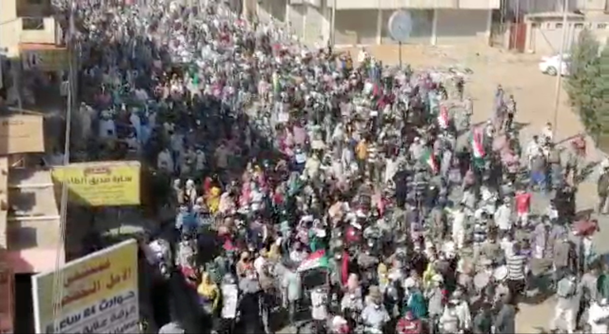 Witnesses estimated the numbers around Khartoum to be in the tens of thousands, with large crowds in other cities bringing the total nationwide to hundreds of thousands.