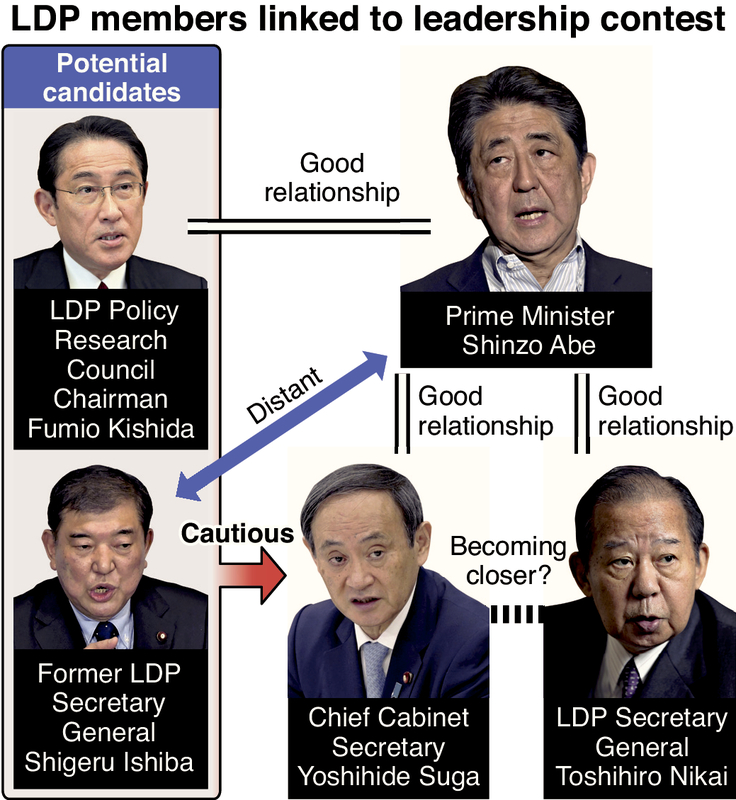 One potential candidate, LDP Policy Research Council Chairman Fumio Kishida, is close to Abe but is seen as lacking in terms of his ability to convey his opinion.