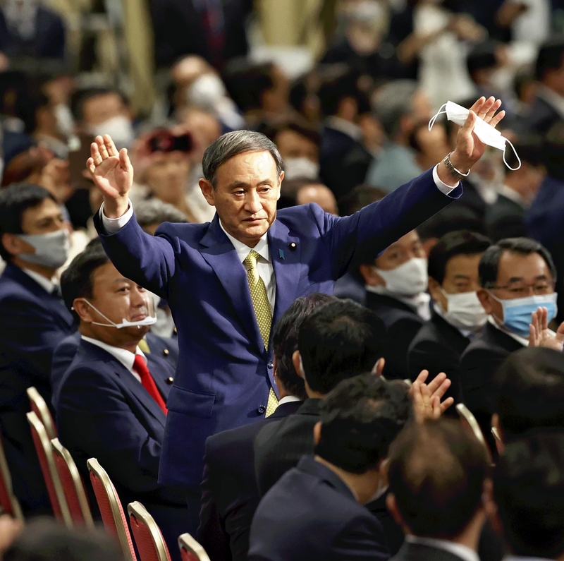 Suga, 71, scored a resounding victory with 377 votes in the first round of voting. LDP Policy Research Council Chairman Fumio Kishida, 63, received 89 votes and former LDP Secretary General Shigeru Ishiba, 63, gained 68 votes.