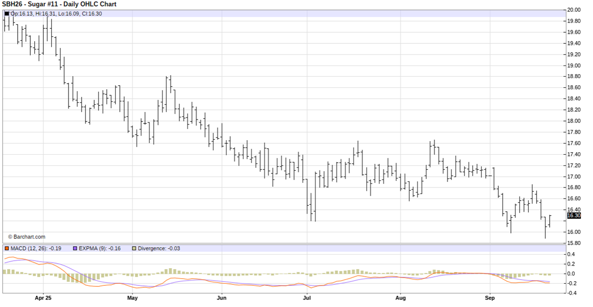 Fundamentally, sugar prices are weakening due to ideas of a global sugar supply surplus in the 2025/26 growing season amid increased production forecasts for major sugar-producing countries like Brazil, India, and Thailand.