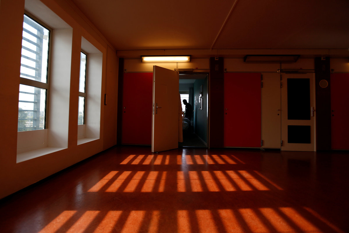 AMSTERDAM (Reuters) - A beaming Syrian refugee called Monjid welcomes guests to Amsterdam's newest hotel, offering them hummus and olives before walking them from the bright pink reception area to their cell.