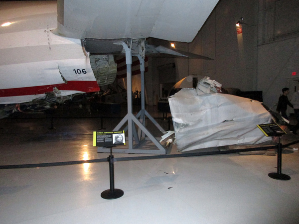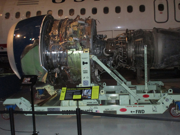 But your attention keeps returning to the un-restored Airbus: the bottom that detached when making initial contact with the Hudson; the dings, dents and other mayhem visited on the lower fuselage; the left engine separated from the jet and recovered later. You can still spot dried "snarge," the guts of geese that crippled both engines.