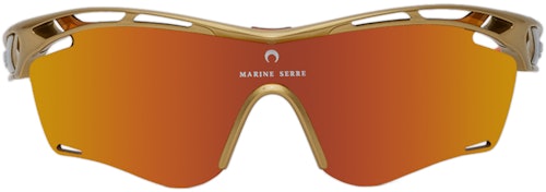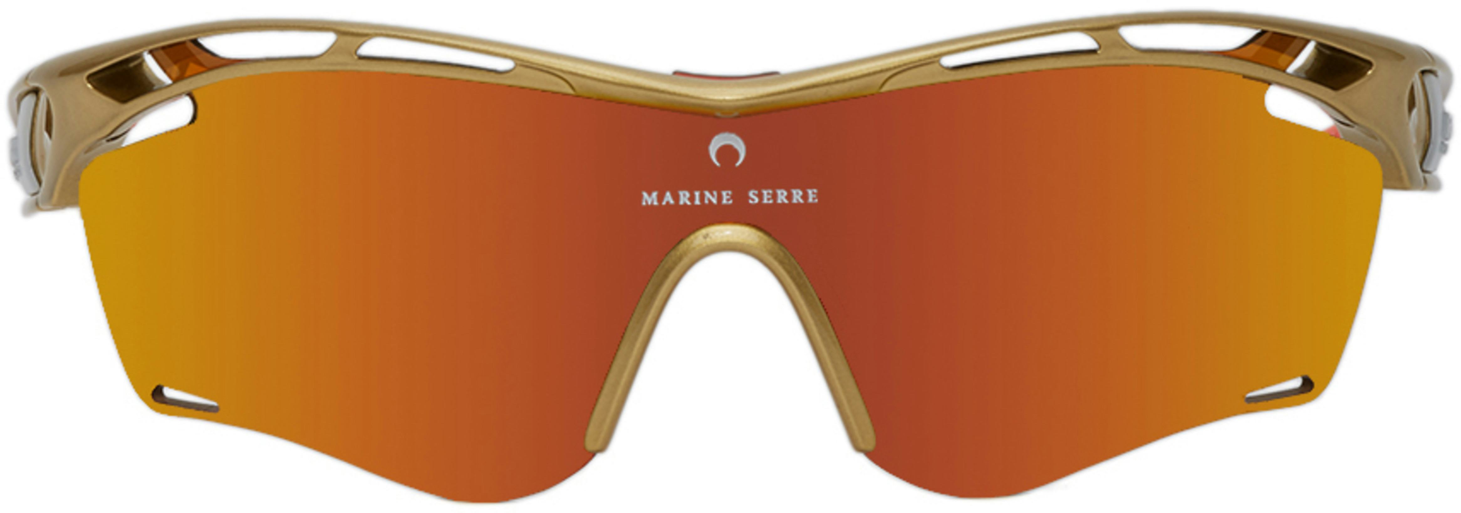 Let's end things with the pair I personally want most. Marine Serre is somehow just 28 years old and is one of the most exciting young designers around right now. Her signature moon motif is a subtle political statement, as it's inspired by the Islamic star and crescent. And oh my does it look incredible at the center of these orange and gold athletic shades.