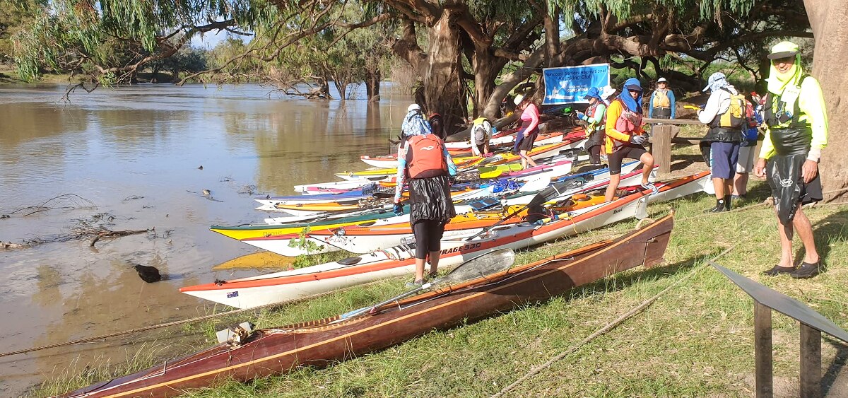 At a campground on the banks of the Darling River, the sun rises as 23 paddlers prepare to pack their tents into kayaks, and push off downstream.
