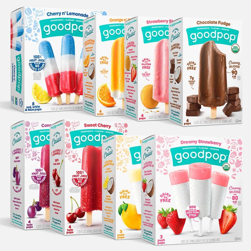 GoodPop went 100% plant-based last year, and rebranded its packaging to draw attention to its mission: “Pledge Good. Do Good. Feel Good.”