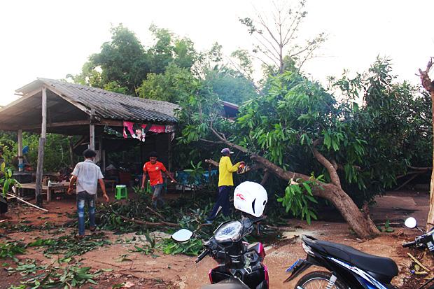 The storm also damaged about 20 houses in tambon Orapim and 40 houses in tambon Chorakhehin. The damage was mostly to the roofs.