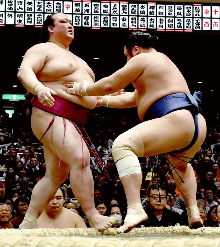 Meanwhile, yokozuna Hakuho managed to stay perfect by eventually throwing out tenacious No. 1 maegashira Ichinojo (2-1).