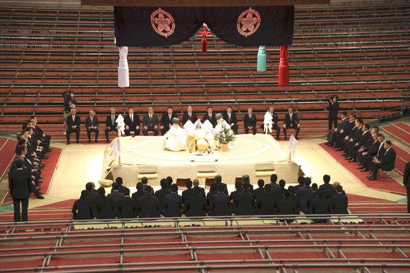 The ritual was observed by Nihon Sumo Kyokai Chairman Hakkaku, who is the former yokozuna Hokutoumi.