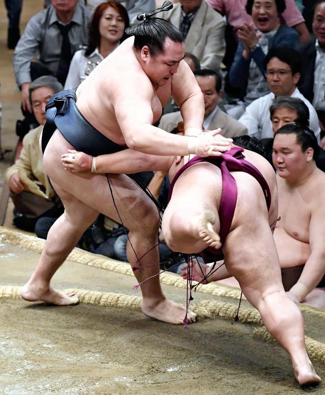 "We have to wait until the last day of the tournament, but the promotion is likely as he is already wrestling like an ozeki," stablemaster Onomatsu, who is in charge of compiling the banzuke rankings, said after Tuesday's action.