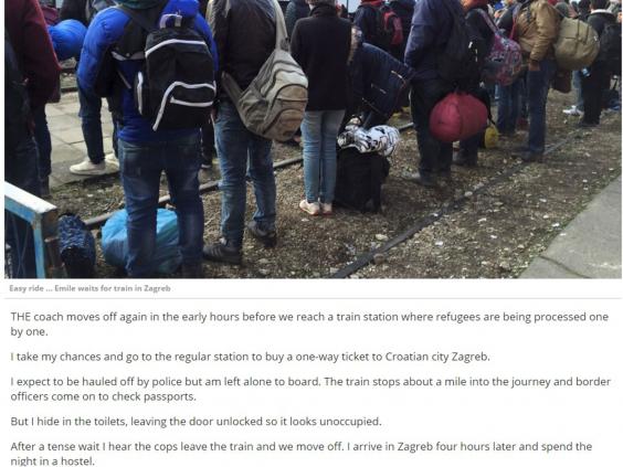 The article said Mr Ghessen evaded border police by hiding in a toilet when his train was stopped at the Croatian border, leaving the door unlocked so it appeared unoccupied.