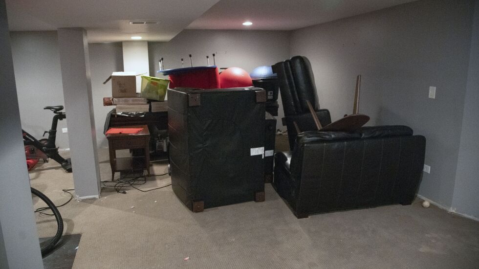 Mark Zander’s finished basement was among many sustaining flood damage after Sunday’s heavy rains. (Brian Rich/Sun-Times)