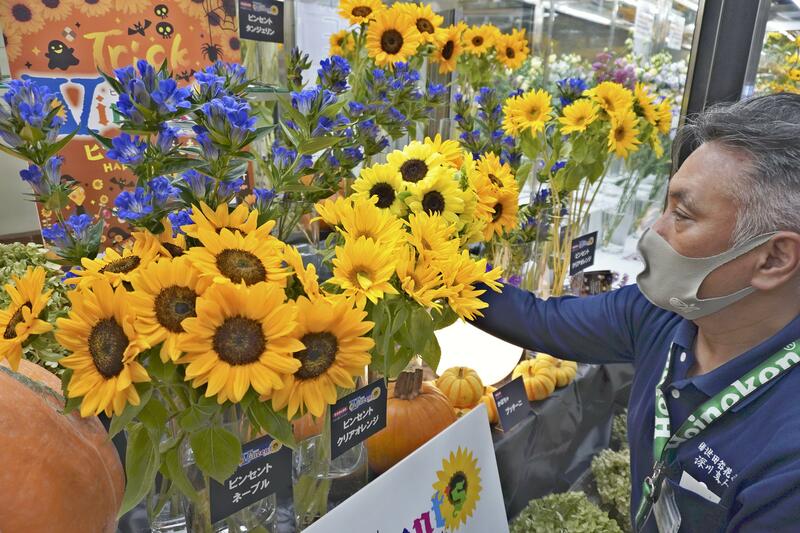 Sakata Seed Corp., based in Yokohama, has been running a campaign to promote autumn-blooming sunflowers since 2015. Seeking to have orange sunflowers included in Halloween decorations using orange pumpkins, the company has given away cut flowers of the Vincent variety, which it developed, at commercial facilities.