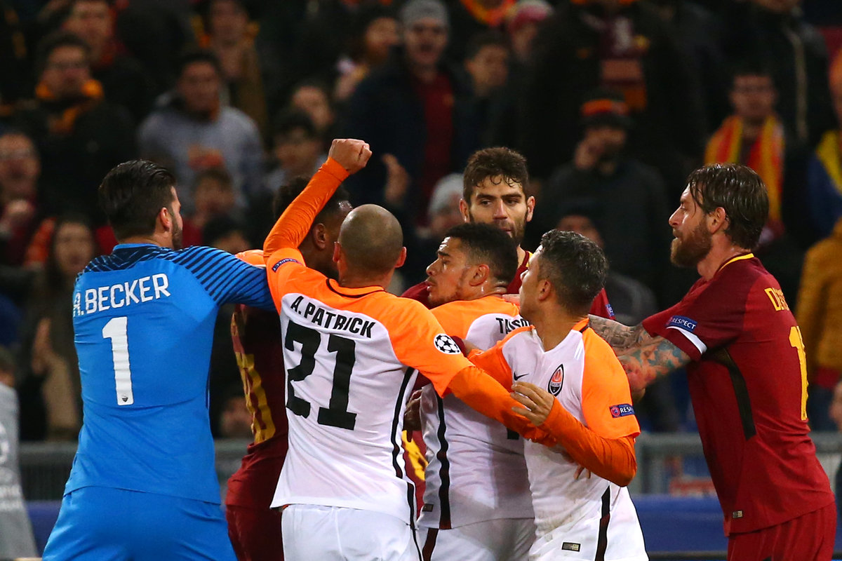 Shakhtar came close to extending their overall advantage in the 13th minute when Roma defender Alessandro Florenzi headed a floated free kick into the box inches wide of his own far post.