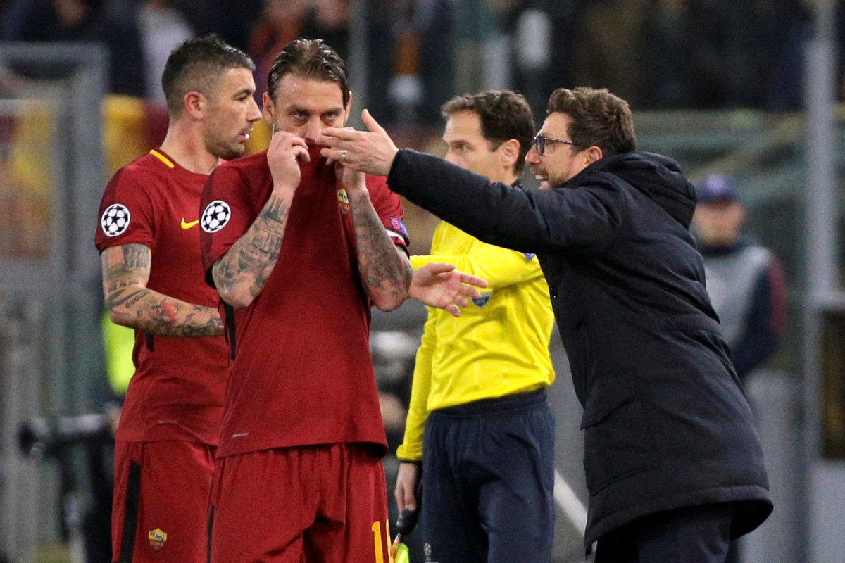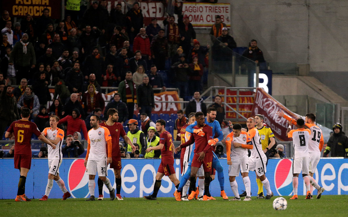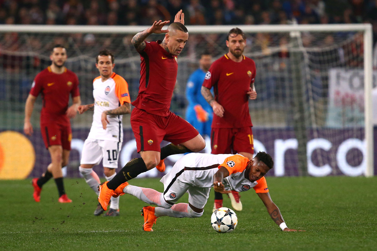 Soccer Football - Champions League Round of 16 Second Leg - AS Roma vs Shakhtar Donetsk - Stadio Olimpico, Rome, Italy - March 13, 2018 Shakhtar Donetsk's Bernard in action with Roma's Konstantinos Manolas REUTERS/Max RossiSoccer Football - Champions League Round of 16 Second Leg - AS Roma vs Shakhtar Donetsk - Stadio Olimpico, Rome, Italy - March 13, 2018 Roma's Gerson is separated from Shakhtar Donetsk's Taison as players from both teams clash REUTERS/Max RossiSoccer Football - Champions League Round of 16 Second Leg - AS Roma vs Shakhtar Donetsk - Stadio Olimpico, Rome, Italy - March 13, 2018 Roma's Gerson in action with Shakhtar Donetsk's Bernard REUTERS/Max RossiSoccer Football - Champions League Round of 16 Second Leg - AS Roma vs Shakhtar Donetsk - Stadio Olimpico, Rome, Italy - March 13, 2018 Shakhtar Donetsk's Facundo Ferreyra in action with Roma's Daniele De Rossi REUTERS/Max RossiSoccer Football - Champions League Round of 16 Second Leg - AS Roma vs Shakhtar Donetsk - Stadio Olimpico, Rome, Italy - March 13, 2018 Roma's Radja Nainggolan in action with Shakhtar Donetsk's Fred REUTERS/Alessandro BianchiSoccer Football - Champions League Round of 16 Second Leg - AS Roma vs Shakhtar Donetsk - Stadio Olimpico, Rome, Italy - March 13, 2018 Roma's Daniele De Rossi in action REUTERS/Alessandro BianchiSoccer Football - Champions League Round of 16 Second Leg - AS Roma vs Shakhtar Donetsk - Stadio Olimpico, Rome, Italy - March 13, 2018 Roma's Aleksandar Kolarov in action with Shakhtar Donetsk's Taras Stepanenko REUTERS/Alessandro BianchiSoccer Football - Champions League Round of 16 Second Leg - AS Roma vs Shakhtar Donetsk - Stadio Olimpico, Rome, Italy - March 13, 2018 Roma's Edin Dzeko in action with Shakhtar Donetsk's Andriy Pyatov, Yaroslav Rakitskiy and Ivan Ordets REUTERS/Max RossiSoccer Football - Champions League Round of 16 Second Leg - AS Roma vs Shakhtar Donetsk - Stadio Olimpico, Rome, Italy - March 13, 2018 Roma's Edin Dzeko in action with Shakhtar Donetsk's Serhiy Kryvtsov REUTERS/Max RossiSoccer Football - Champions League Round of 16 Second Leg - AS Roma vs Shakhtar Donetsk - Stadio Olimpico, Rome, Italy - March 13, 2018 Roma coach Eusebio Di Francesco gives instructions to Daniele De Rossi REUTERS/Max RossiSoccer Football - Champions League Round of 16 Second Leg - AS Roma vs Shakhtar Donetsk - Stadio Olimpico, Rome, Italy - March 13, 2018 Roma's Konstantinos Manolas in action with Shakhtar Donetsk's Facundo Ferreyra REUTERS/Alessandro Bianchi