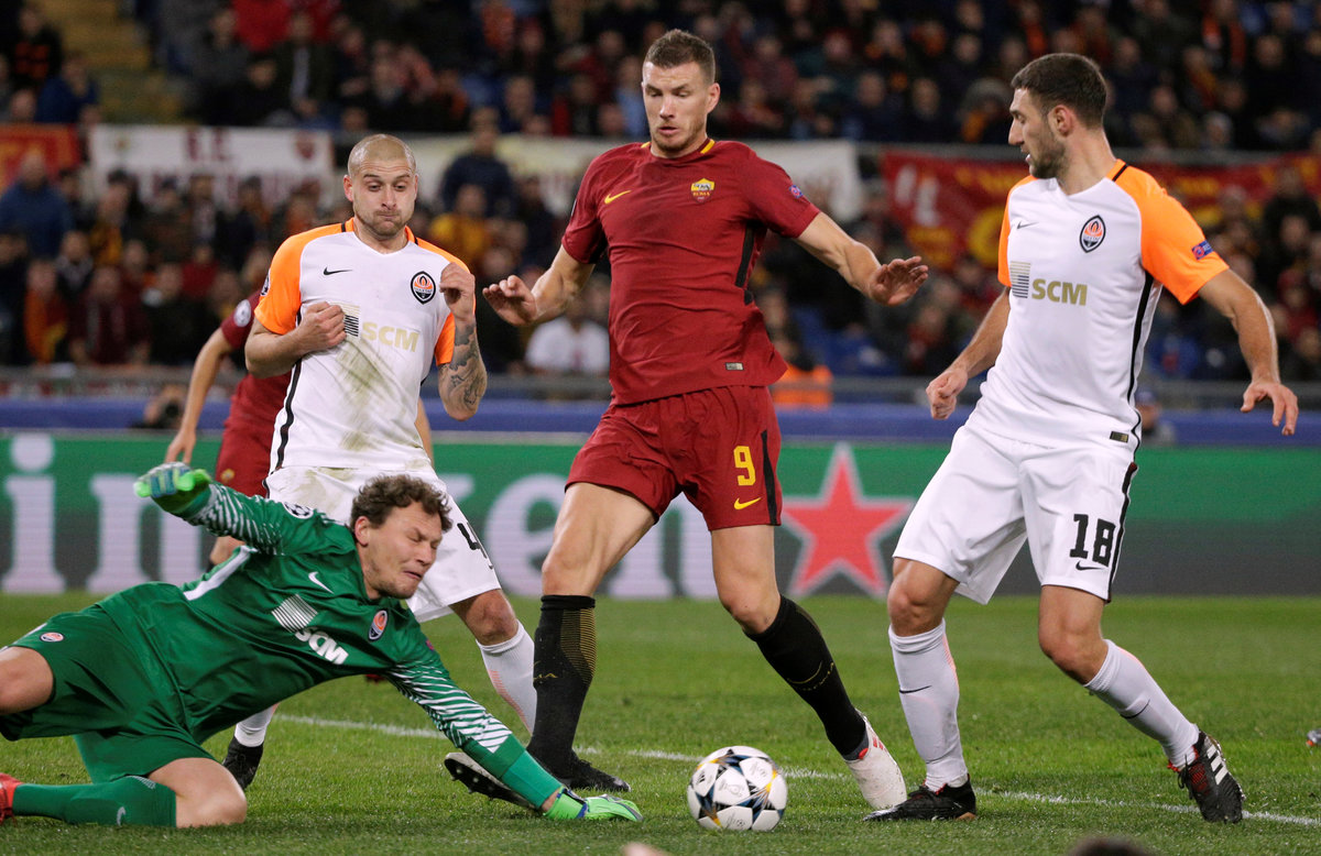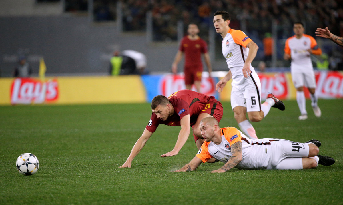 Soccer Football - Champions League Round of 16 Second Leg - AS Roma vs Shakhtar Donetsk - Stadio Olimpico, Rome, Italy - March 13, 2018 Roma's Edin Dzeko in action with Shakhtar Donetsk's Ivan Ordets REUTERS/Alessandro Bianchi