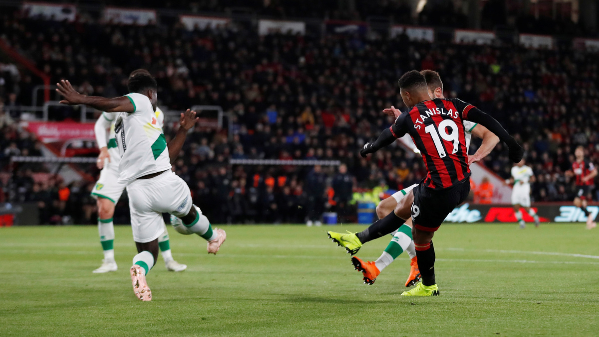 Bournemouth, who are flying high in sixth in the Premier League, opened the scoring in the 39th minute when Stanislas weaved into the area with a couple of stepovers and then rifled the ball into the net.