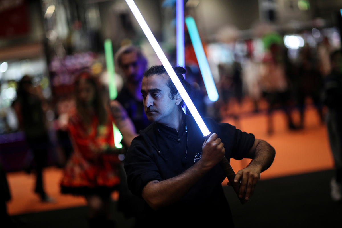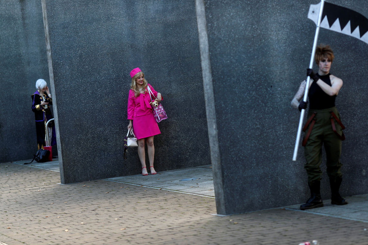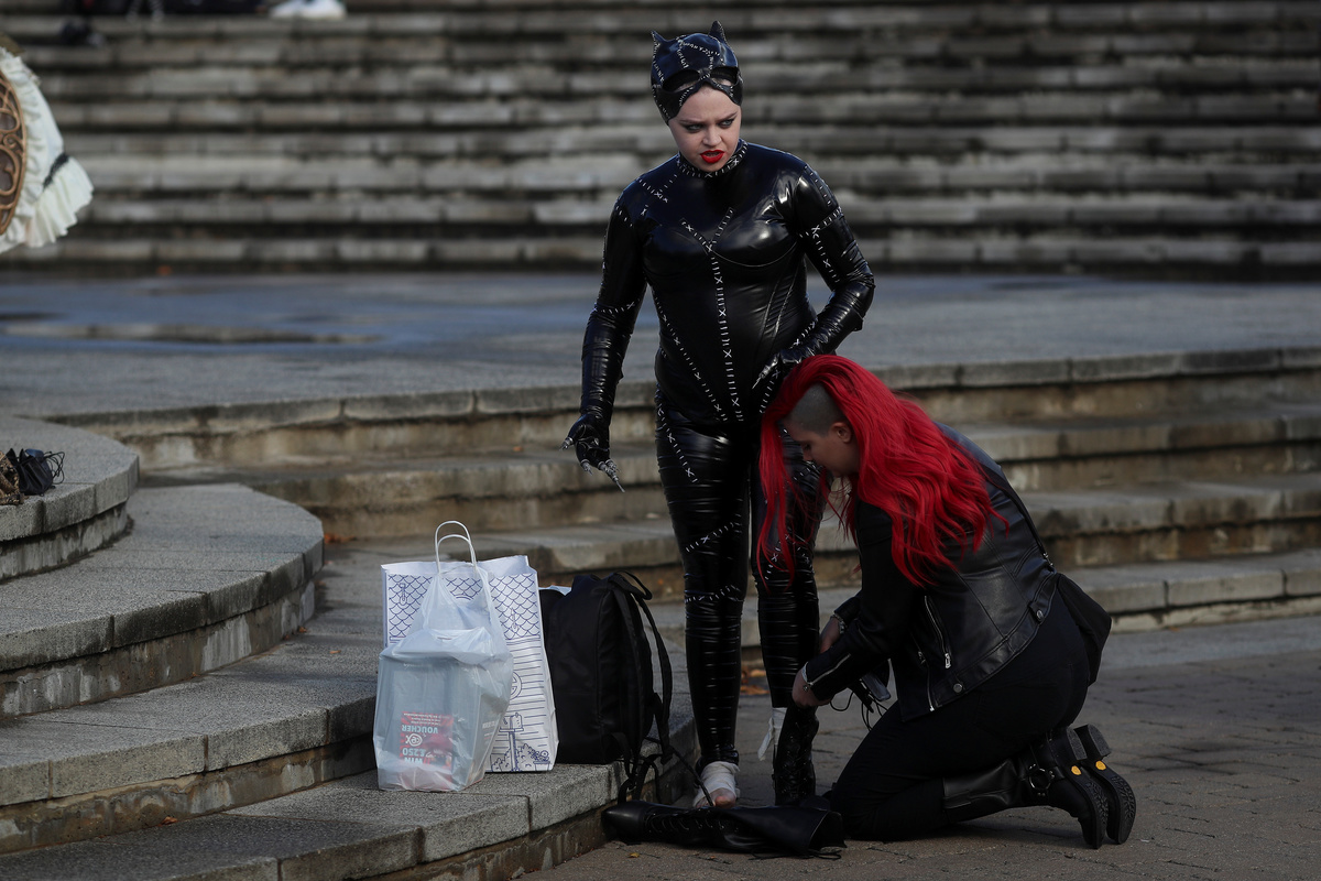 Attendees, dressed as their favourite comic characters for the MCM London Comic Con, walk down stairs outside the Excel Centre in London, Britain, October 26, 2018. REUTERS/Simon DawsonAn attendee, dressed as U.S.A. President Donald Trump, sits on stairs as he attends the MCM London Comic Con at the Excel Centre in London, Britain October 26, 2018. REUTERS/Simon DawsonAttendees, dressed as their favourite comic characters for the MCM London Comic Con, stand outside the Excel Centre in London, Britain, October 26, 2018. REUTERS/Simon DawsonA woman, dressed as a playboy bunny, walks down stairs at the MCM London Comic Con outside the Excel Centre in London, Britain, October 26, 2018. REUTERS/Simon DawsonAttendees, dressed as their favourite comic characters for the MCM London Comic Con, pose for photographers outside the Excel Centre in London, Britain October 26, 2018. REUTERS/Simon DawsonAttendees, dressed as their favourite comic characters for the MCM London Comic Con, pose for photographers outside the Excel Centre in London, Britain October 26, 2018. REUTERS/Simon DawsonAn attendee, dressed as Catwoman for the MCM London Comic Con, is helped to put her shoes on outside the Excel Centre in London, Britain, October 26, 2018. REUTERS/Simon DawsonAn attendee, dressed as his favourite comic character, poses for photographs at the MCM London Comic Con outside the Excel Centre in London, Britain, October 26, 2018. REUTERS/Simon DawsonAn attendee helps another attendee with her costume at the MCM London Comic Con at the Excel Centre in London, Britain, October 26, 2018. REUTERS/Simon DawsonAttendees, dressed as their favourite comic characters for the MCM London Comic Con, stand outside the Excel Centre in London, Britain, October 26, 2018. REUTERS/Simon DawsonAttendees, dressed as their favourite comic characters for the MCM London Comic Con, walk outside the Excel Centre in London, Britain, October 26, 2018. REUTERS/Simon DawsonAttendees practice their lightsaber skills at the MCM London Comic Con outside the Excel Centre in London, Britain, October 26, 2018. REUTERS/Simon DawsonAn attendee, dressed as her favourite comic characters for the MCM London Comic Con, stands outside the Excel Centre in London, Britain, October 26, 2018. REUTERS/Simon Dawson