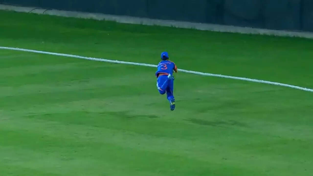 UAE tailender Jawadullah hit an aerial shot to long-on, and it looked destined for a boundary until Badoni, running to his right, dived full-length in the air to pluck the ball out of thin air.