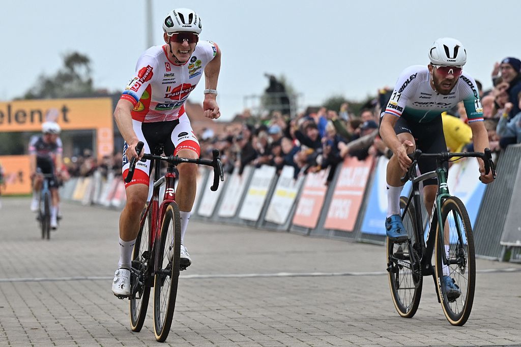 On the fast and bumpy course in Ruddervoorde, Niels Vandeputte (Alpecin-Deceuninck DT) set the pace from the very first corner, trading turns at the front with Kevin Kühn (Heizomat–Cube) as the field stretched out. No one managed to break clear until Nieuwenhuis surged ahead with six laps remaining.