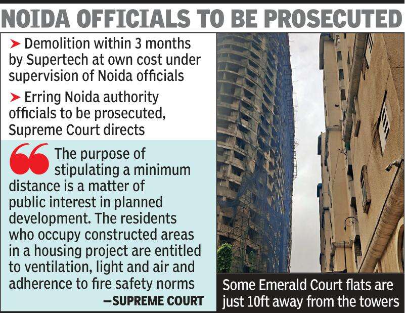 The top court also affirmed the HC order for sanctioning prosecution under provisions of Uttar Pradesh Urban Development Act and Industrial Area Development Act, against the officials of the Supertech Ltd and the officers of Noida for violations of the provisions of laws.