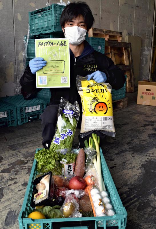 The Tokyo-based company also launched drive-through-style sales in Noda, Chiba Prefecture in early April, preparing boxes that contained roughly 20 various types of produce for 3,500 yen each, including tax, and some that also included 5 kilograms of rice for 5,000 yen. The company has expanded the similar sales method to cities such as Sapporo, Osaka and Fukuoka.